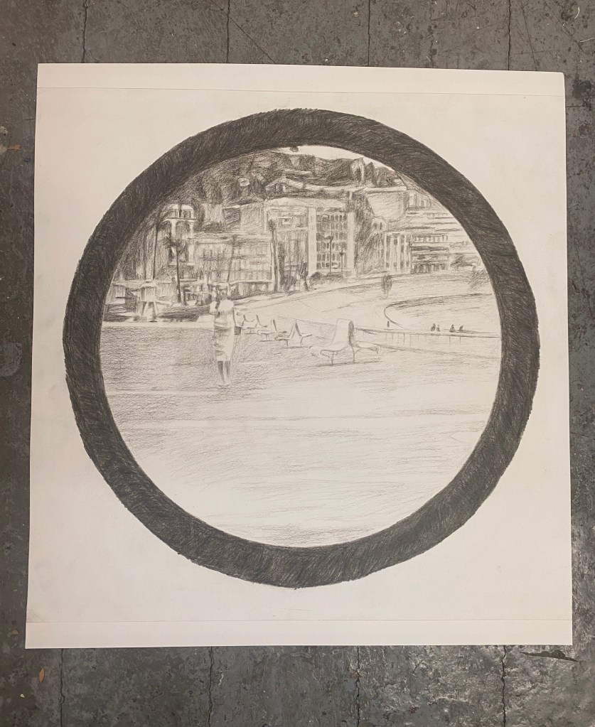 Bay of Angels Conté pencil on paper, 45 x 43 cm, 2025 Share this: Click to share on X (Opens in new window) X Click to share on Facebook (Opens in new window) Facebook Click to share on WhatsApp (Opens in new window) WhatsApp Click to email a link to a friend (Opens in new window) Email Like Loading...