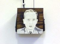 For Hearing Bertolt Brecht Derek Hampson used recordings of Brecht’s interrogation by the House Un-American Activities Committee to make 4 audio works. From these recording he created 4 indvidual sound files. These were then transmitted by radio into the gallery on 4 different frequencies. Each was picked up by four small receivers, each of which had a painting attached to it – below.