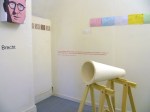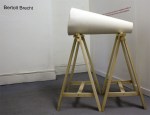 Peter Hofer’s Listening and Speaking – a Visual Likeness (2010) is a sculptural representation of the distribution and reception of sound, its conical plaster structure offering an analogy for the physical materiality of this most intangible of mediums. This work also echoes the related visual forms of a hunting horn and the tympanum of the human ear.