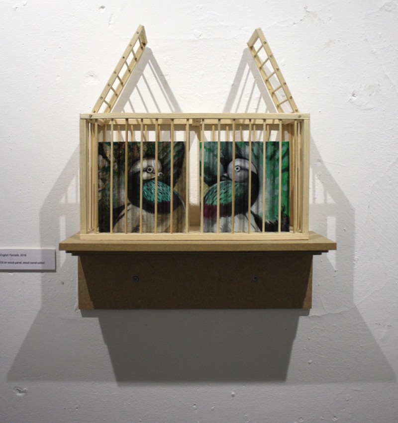 2018, oil on wood panel, wood construction, 28 x 35 cm
